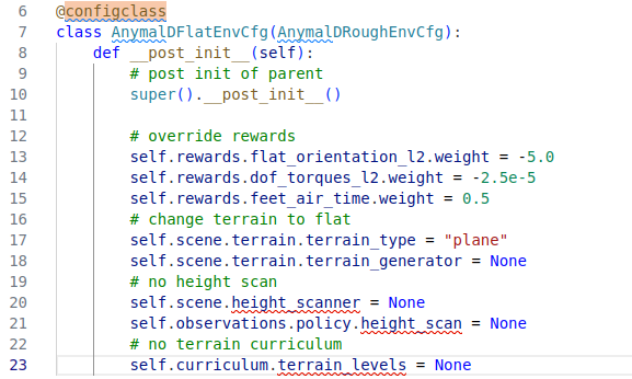 본 포스팅을 진행하는 이유는 IsaacLab extension 프로젝트인 IsaacLabExtensionTemplate 에서 사용하는 코드 중 위 이미지와 같이 configclass decorator를 발견했는데, 어떠한 용도로 사용되는 지 궁금해서였다. 그래서 설명을 찾아보니 dataclass decorator를 좀 더 확장성 있게 만든 것이라고 설명을 하기에 두가지의 decorator를 비교해보고자 한다.